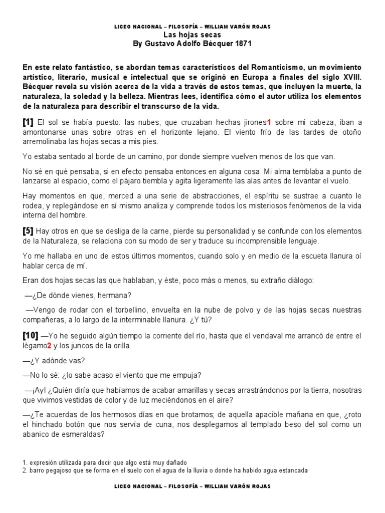 “Las hojas secas” escrito por Gustavo Adolfo Bécquer. Edición, culturales y no lucrativos, con la obligación de citar digital. Derechos Reservados. Biblioteca Digital © Instituto