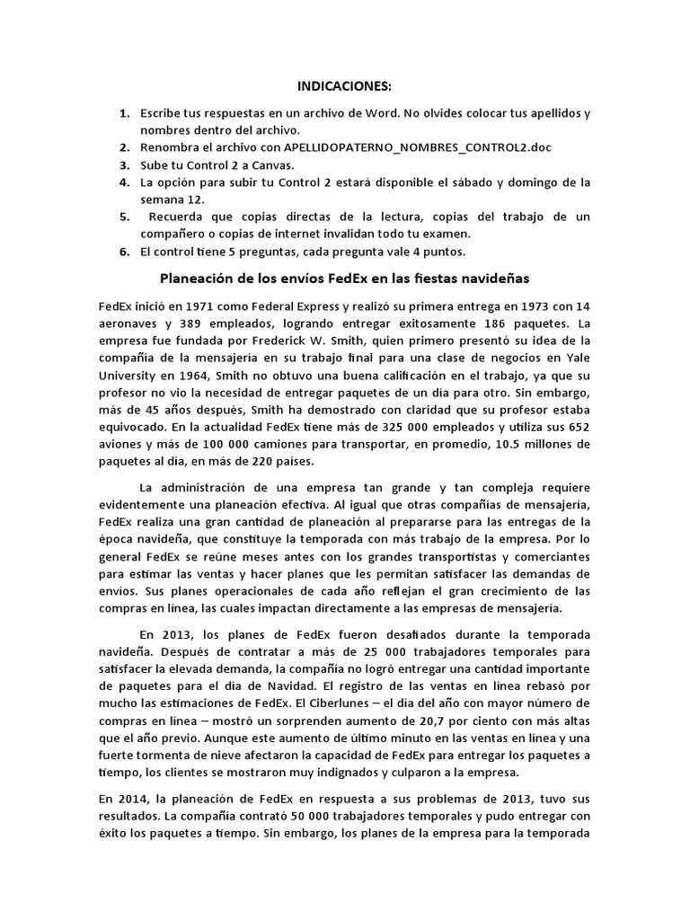 Pregunta 2: FedEx señaló que un clima inclemente y el aumento de las compras en