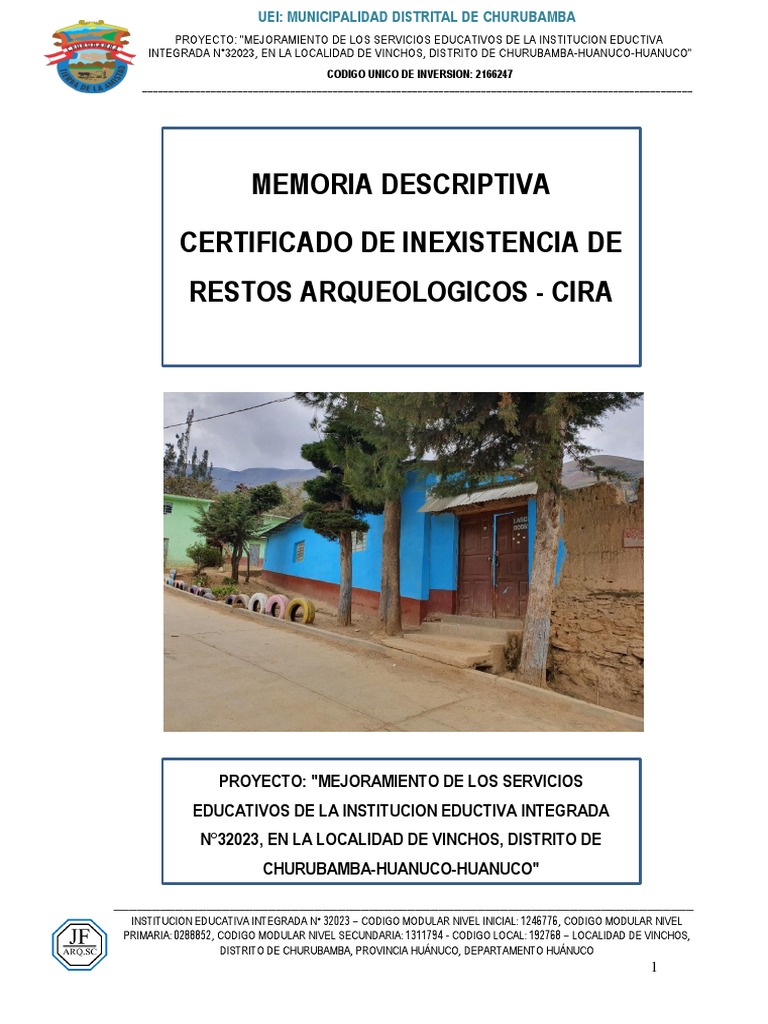 INTEGRADA N°32023, EN LA LOCALIDAD DE VINCHOS, DISTRITO DE CHURUBAMBA-HUANUCO-HUANUCO"