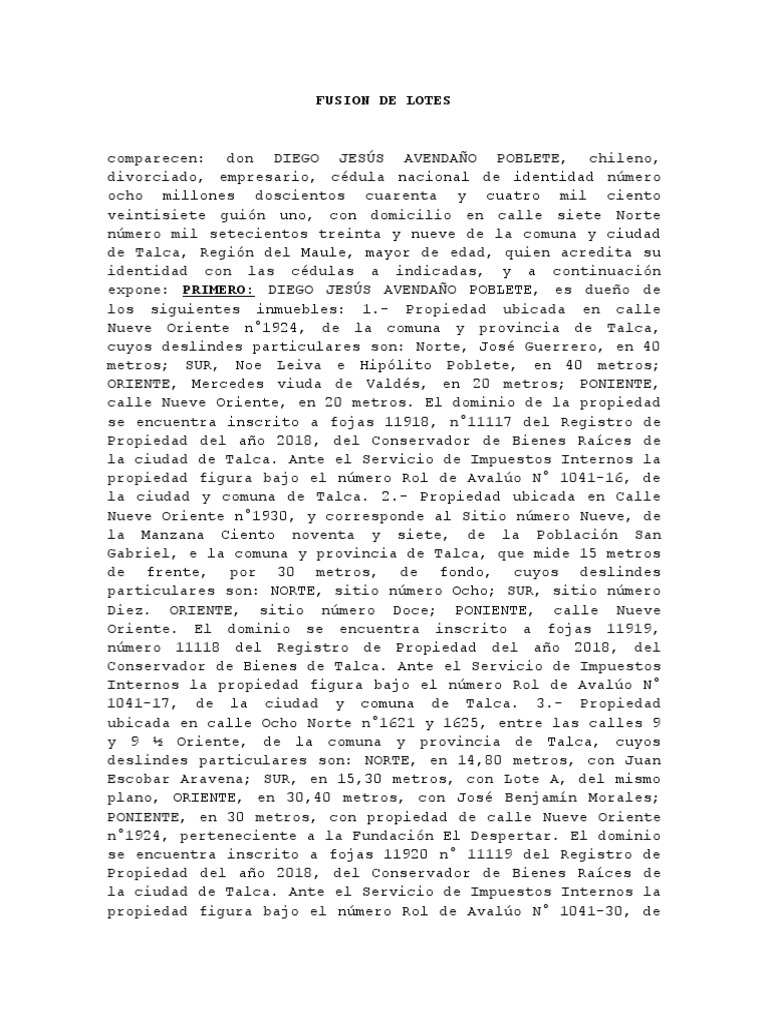 LOS ROL; 1041-17, y 1041-30 DE LA COMUNA DE TALCA. ASV/PGO.