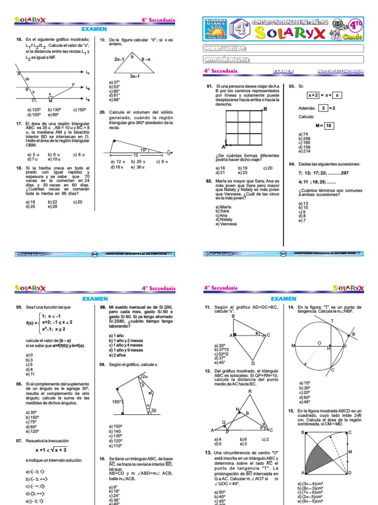 L1 4° Secundaria EXAMEN NIVEL SECUNDARIA
