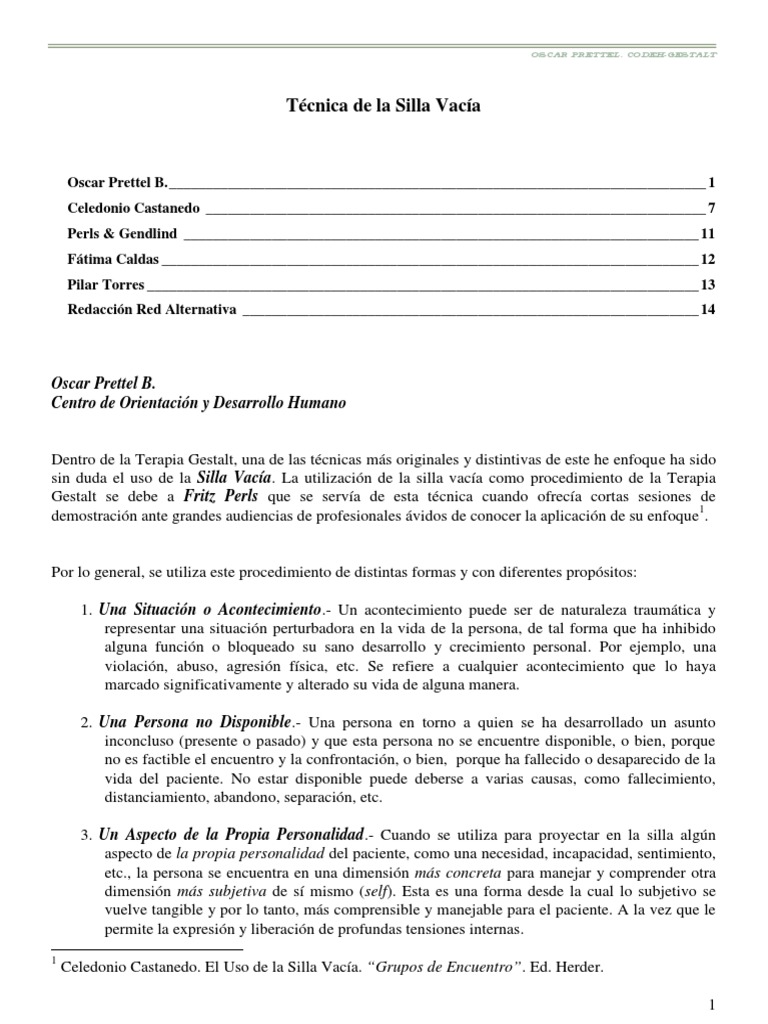vació de la silla. El terapeuta le pide primero lo describa en su aspecto físico para darle fuerza a tal