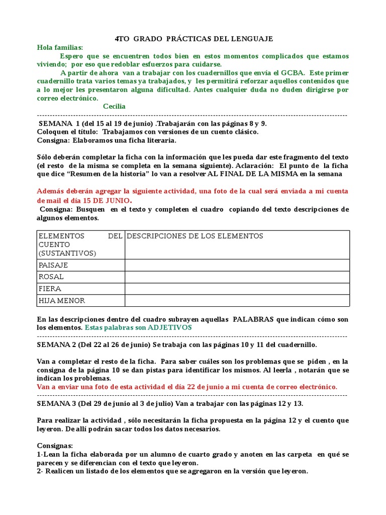 4TO GRADO PRÁCTICAS DEL LENGUAJE