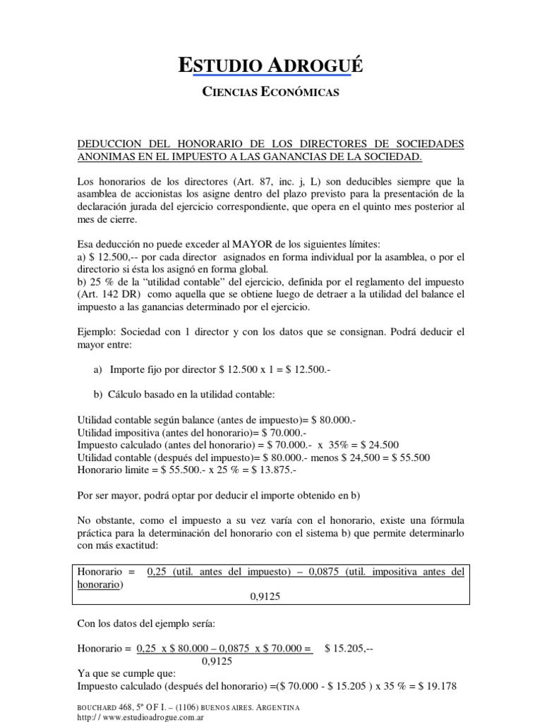 DEDUCCION DEL HONORARIO DE LOS DIRECTORES DE SOCIEDADES