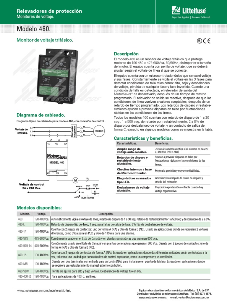 El modelo 460 es un monitor de voltaje trifásico que protege