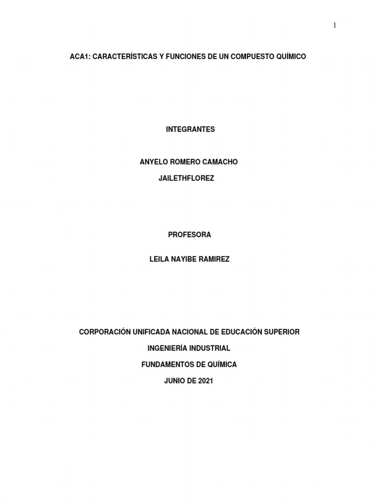 ACA1: CARACTERÍSTICAS Y FUNCIONES DE UN COMPUESTO QUÍMICO