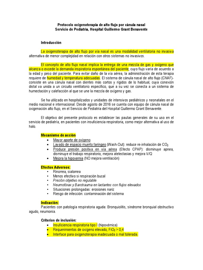 Protocolo oxigenoterapia de alto flujo por cánula nasal