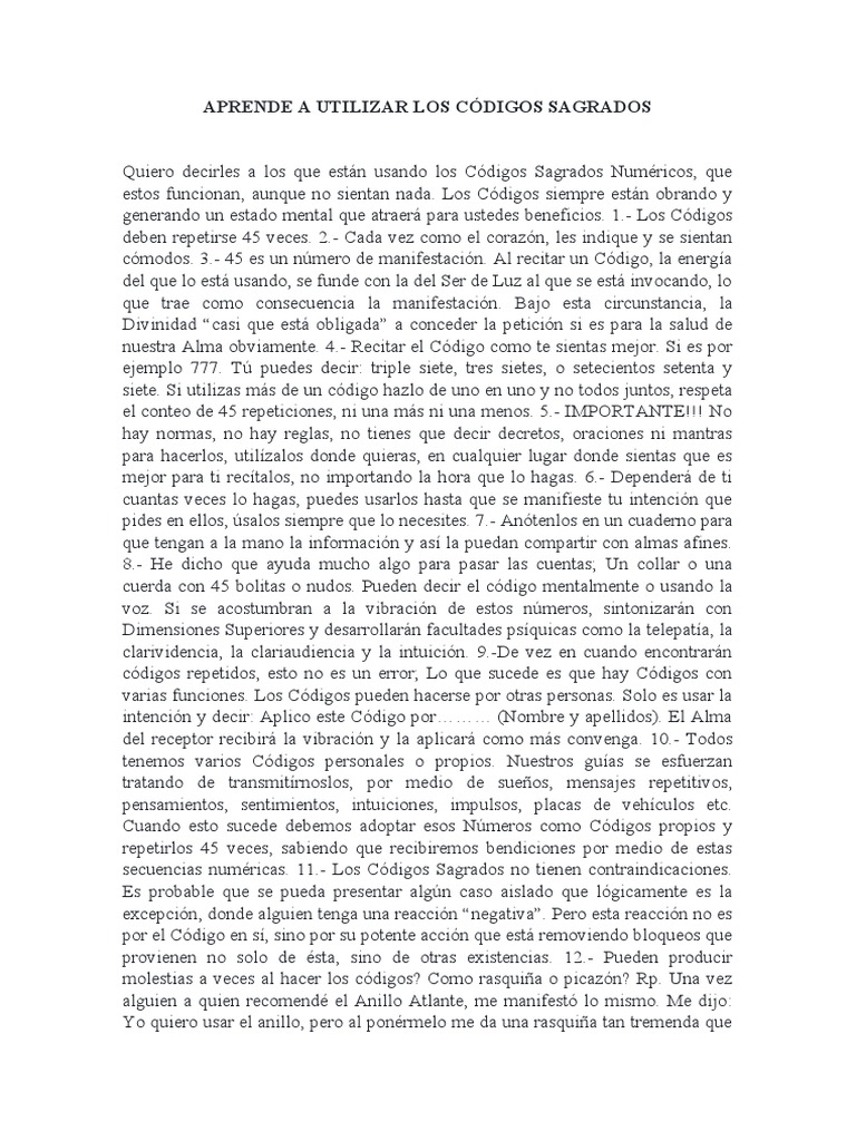 secuencias numéricas. 11.- Los Códigos Sagrados no tienen contraindicaciones.