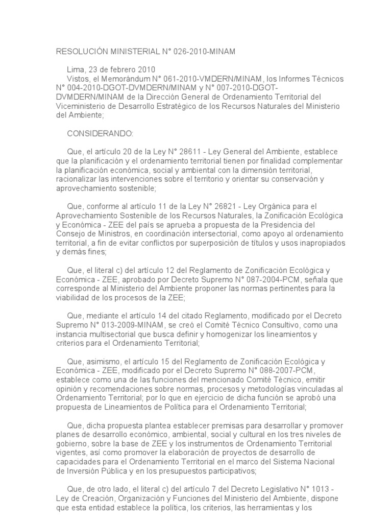 RESOLUCIÓN MINISTERIAL N° 026-2010-MINAM
