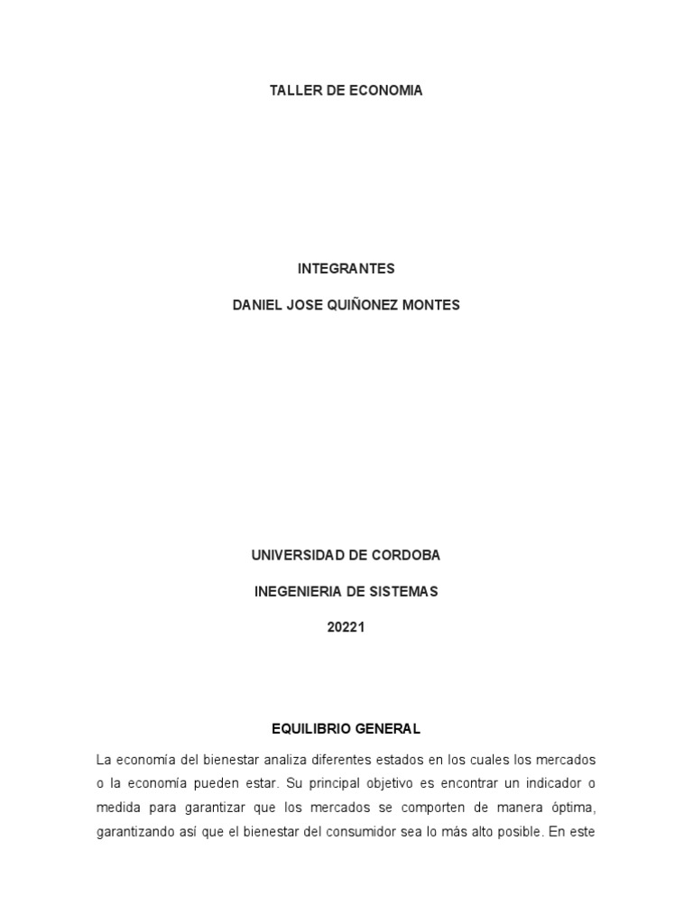 fundamental de la economía del bienestar, este equilibrio debe ser Pareto