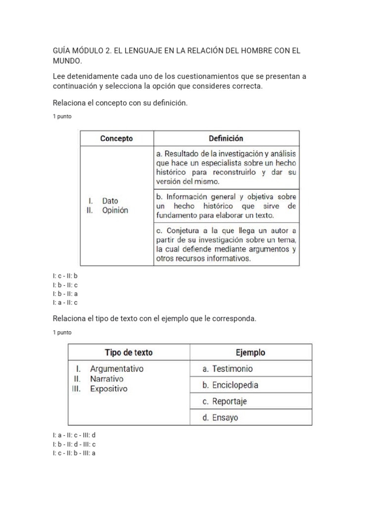Lee detenidamente cada uno de los cuestionamientos que se presentan a