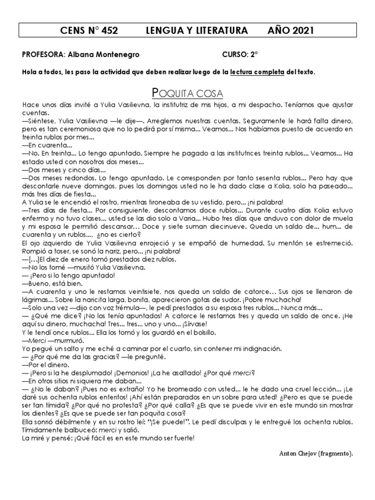 descontarle nueve domingos, pues los domingos usted no le ha dado clase a Kolia, solo ha paseado...