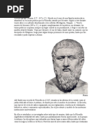 filósofo; en el Timeo expone el mito de la creación del mundo por obra del Demiurgo; en