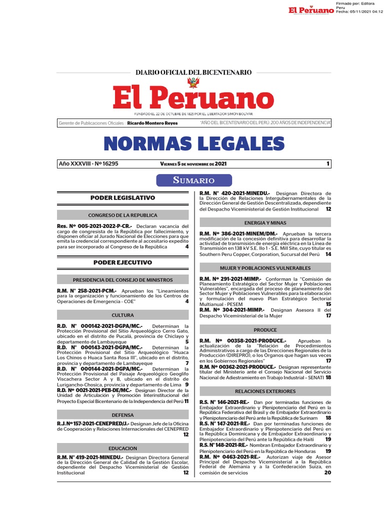 El Peruano / Viernes 5 de noviembre de 2021 NORMAS LEGALES 3