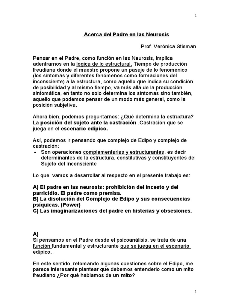 A) El padre en las neurosis: prohibición del incesto y del