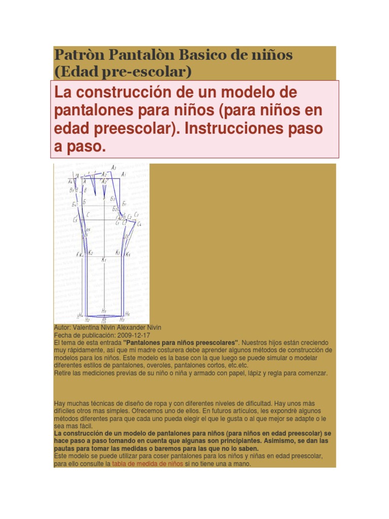 Patròn Pantalòn Basico de niños