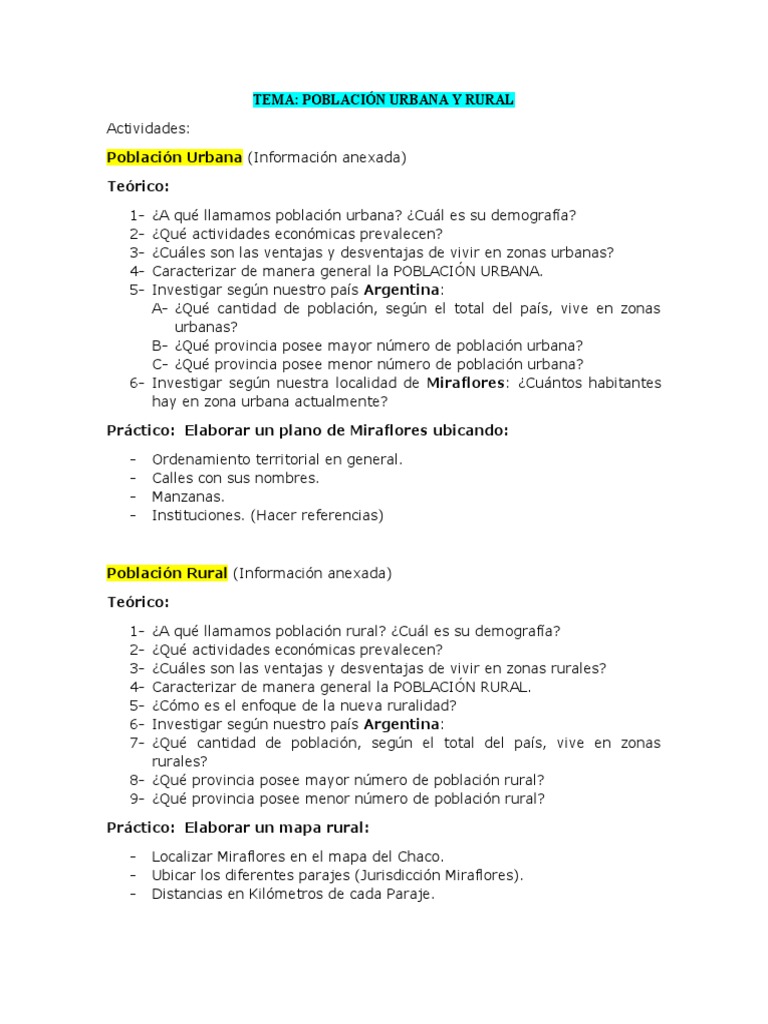 TEMA: POBLACIÓN URBANA Y RURAL
