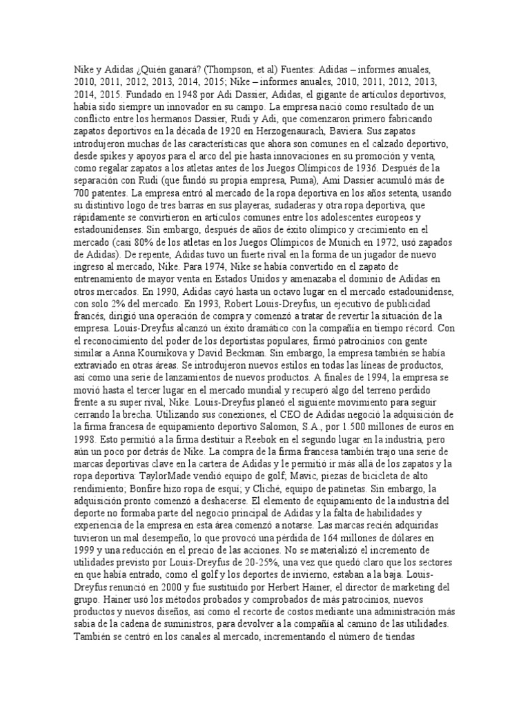 (Thompson, et al) Fuentes: Adidas – informes anuales,