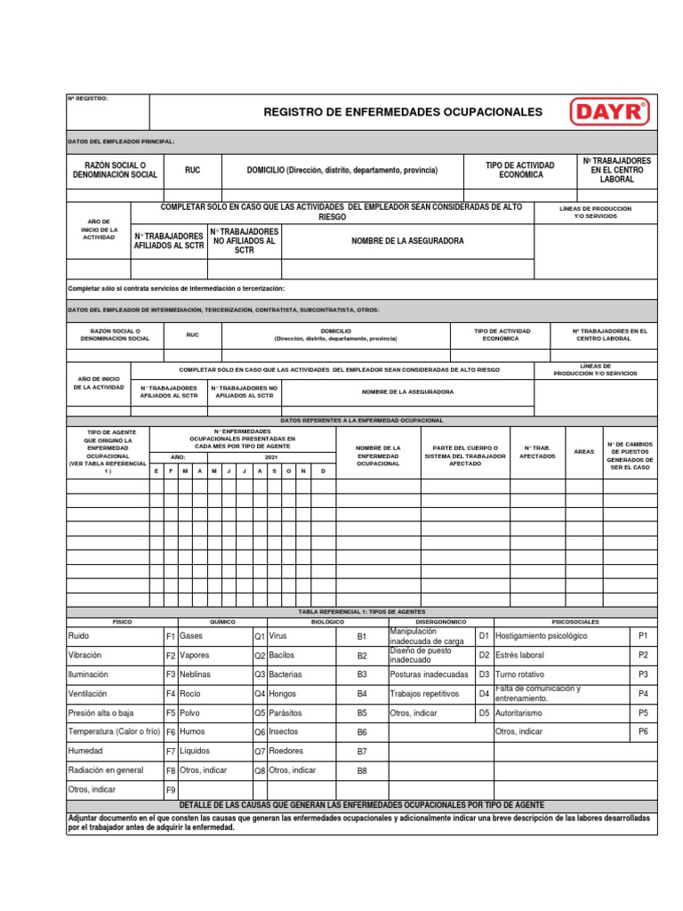 REGISTRO DE ENFERMEDADES OCUPACIONALES