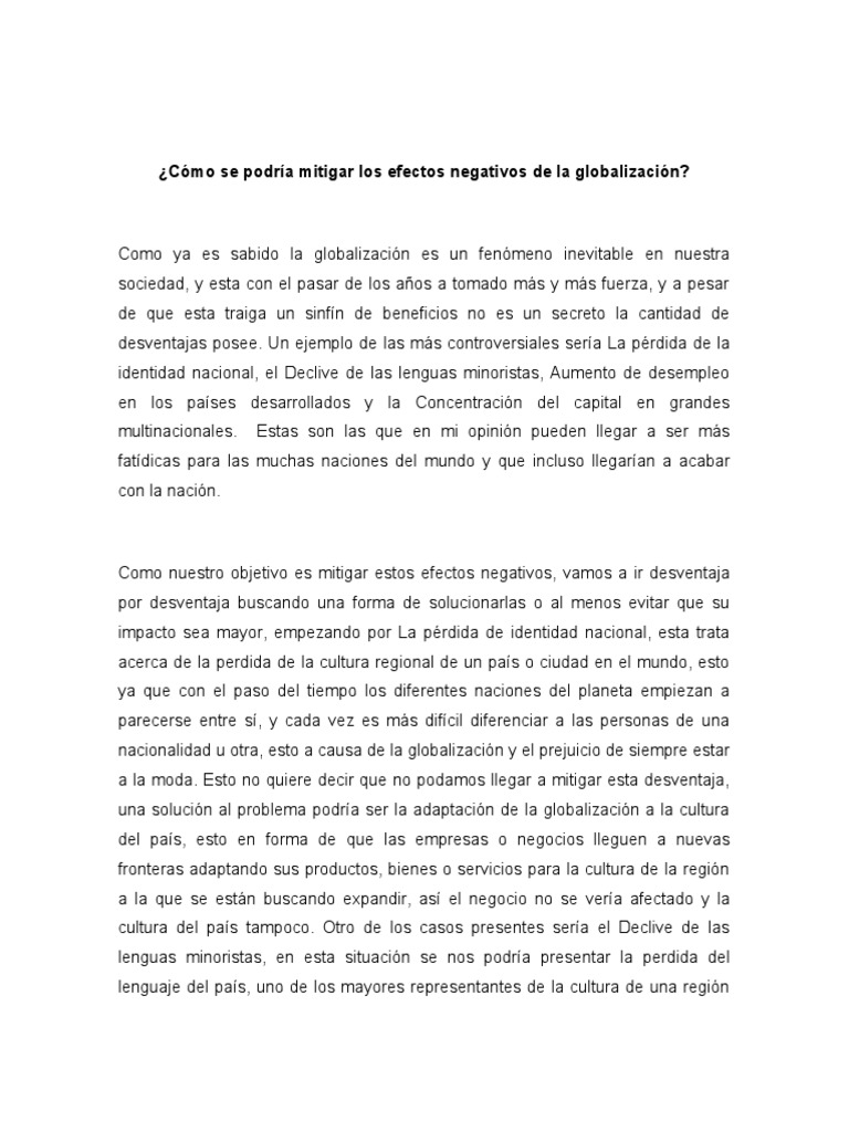¿Cómo se podría mitigar los efectos negativos de la globalización?