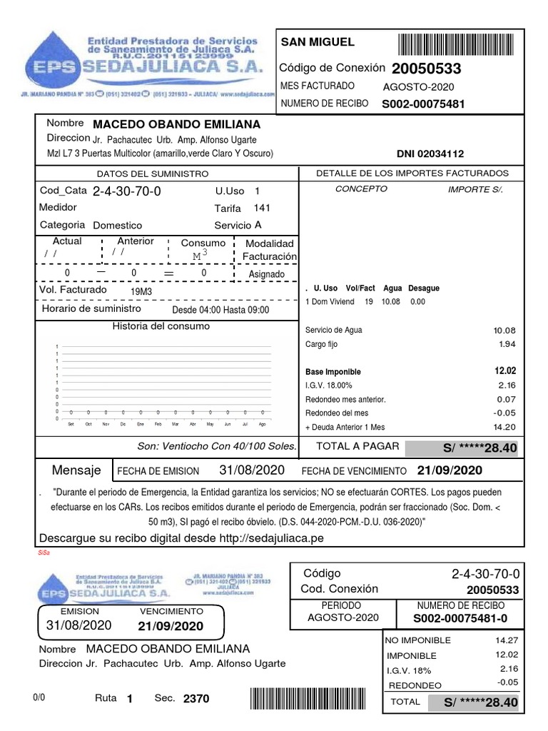 50 m3), SI pagó el recibo óbvielo. (D.S. 044-2020-PCM.-D.U. 036-2020)"