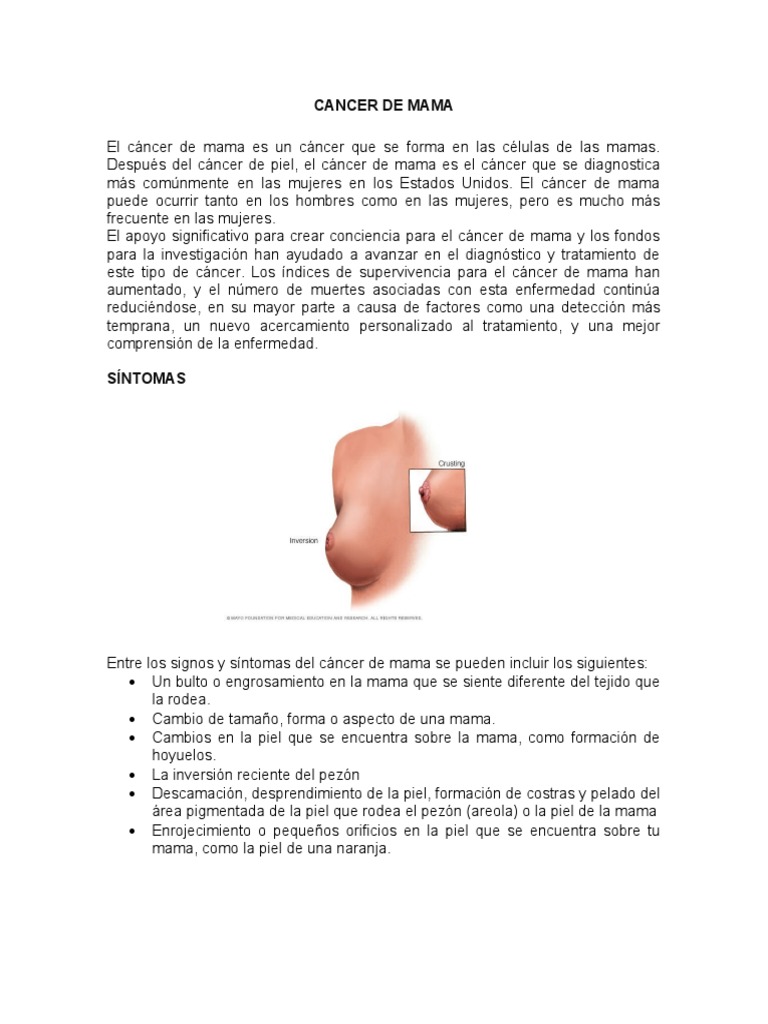 tus mamas e identificar cualquier signo y síntoma inusual.