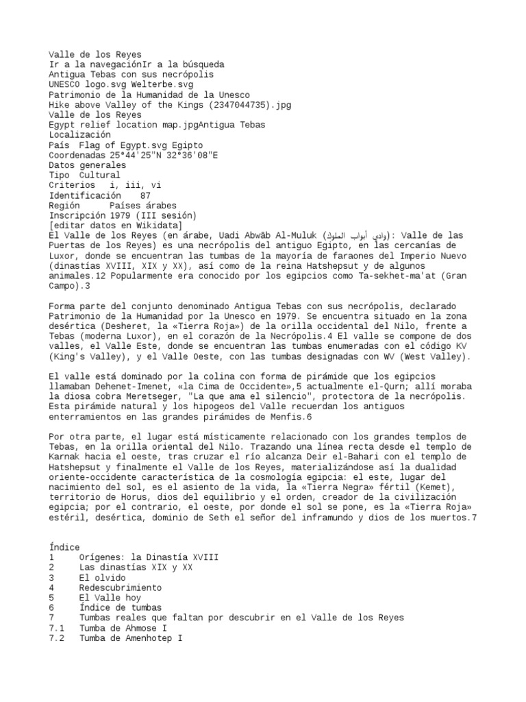 Tebas (moderna Luxor), en el corazón de la Necrópolis.4 El valle se compone de dos