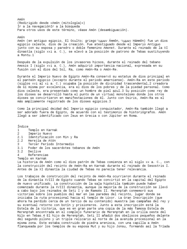 Amón (en antiguo egipcio, El Oculto; griego Ἄμμων Ámmōn, Ἅμμων Hámmōn) fue un dios