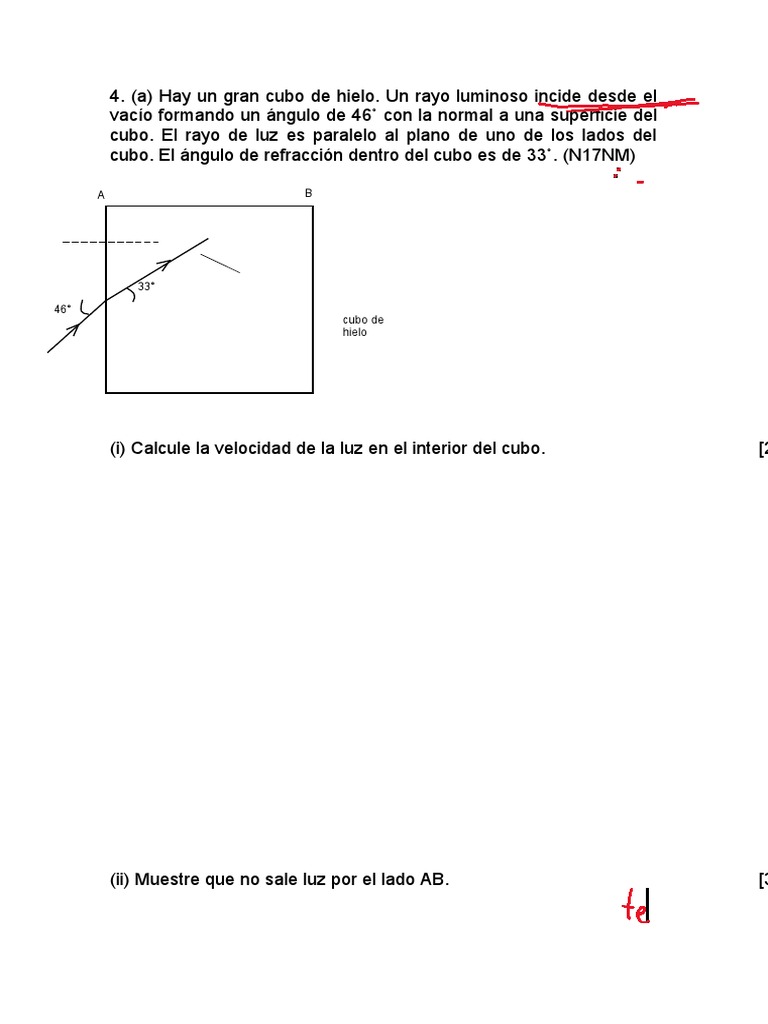 cubo. El ángulo de refracción dentro del cubo es de 33˚. (N17NM)