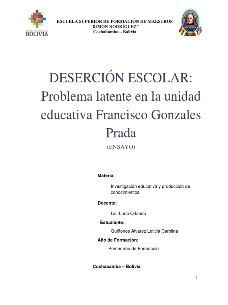 DESERCIÓN ESCOLAR: Problema latente en la unidad educativa