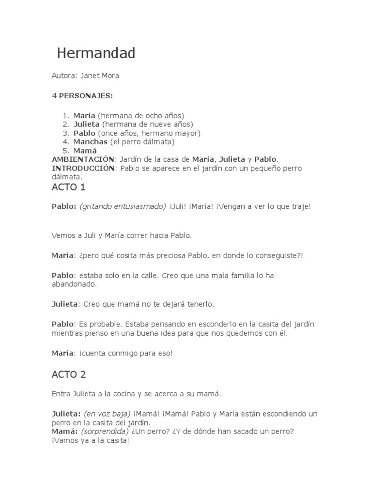 Mamá: (con ternura) Pablo, María. De verdad me siento muy conmovida y