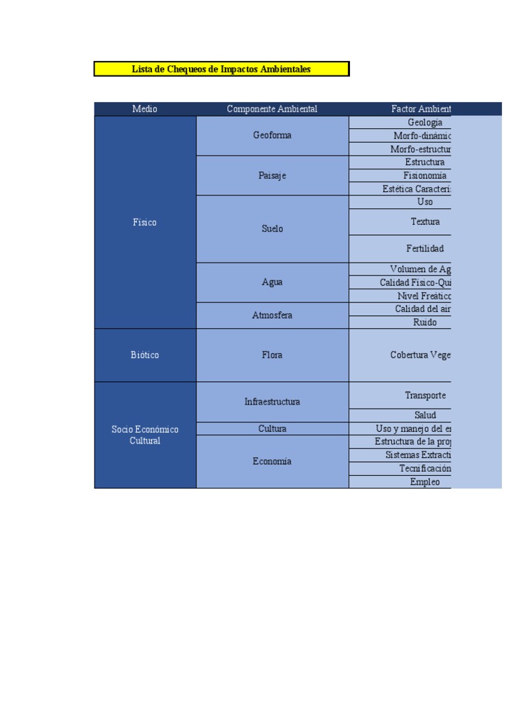 Lista de Chequeos de Impactos Ambientales