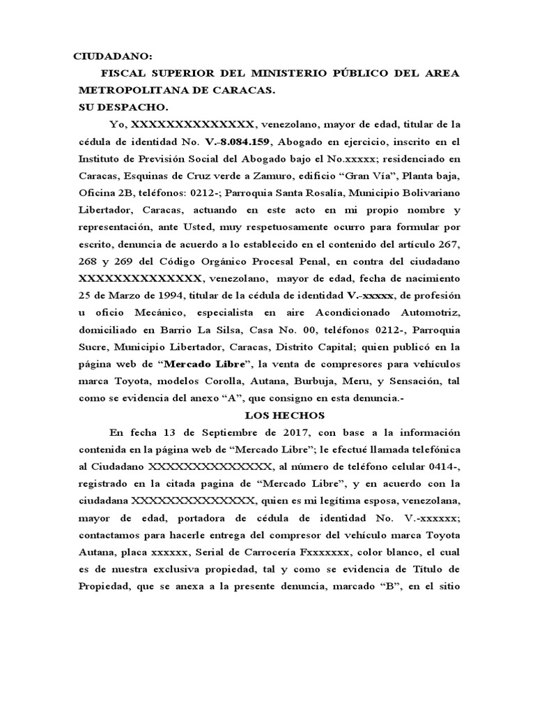 NOTA: Los recaudos serán consignados por ante la Fiscalía que tenga