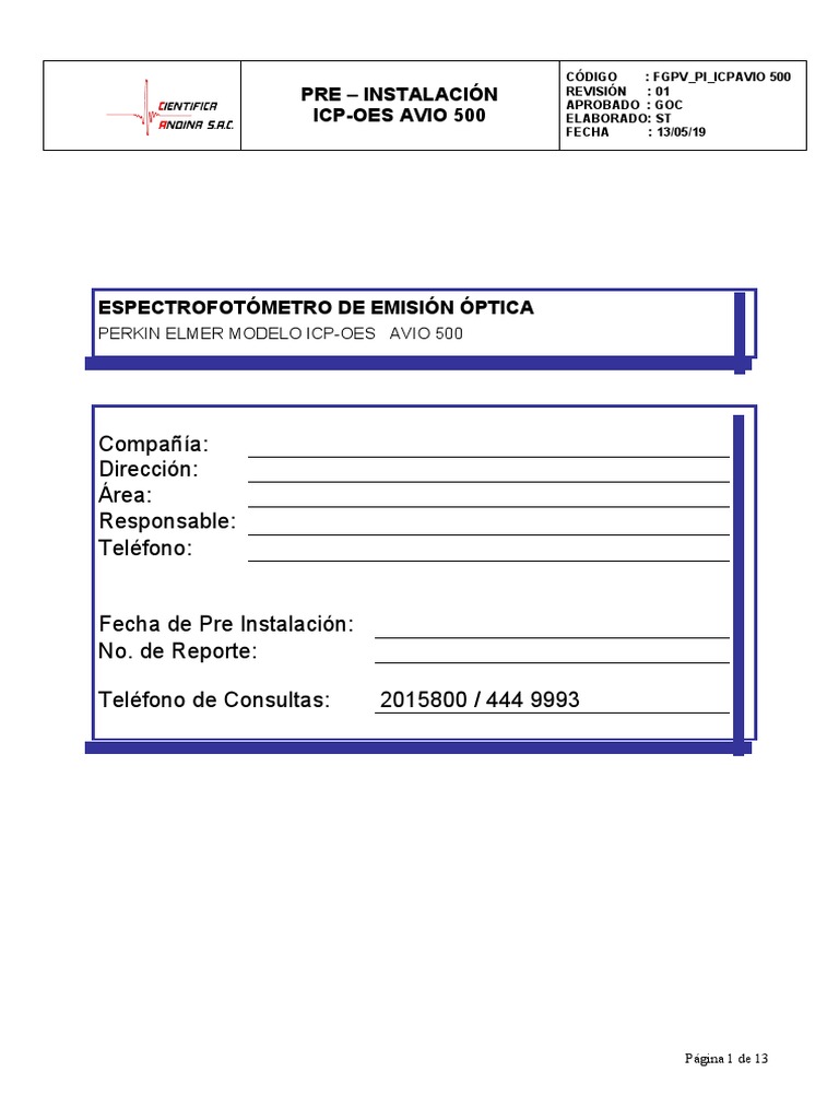 El laboratorio donde se va a instalar el instrumento ICP-OES AVIO 500 debe cumplir las
