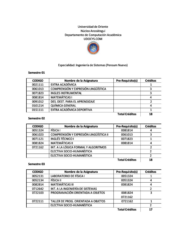 Especialidad: Ingeniería de Sistemas (Pensum Nuevo)
