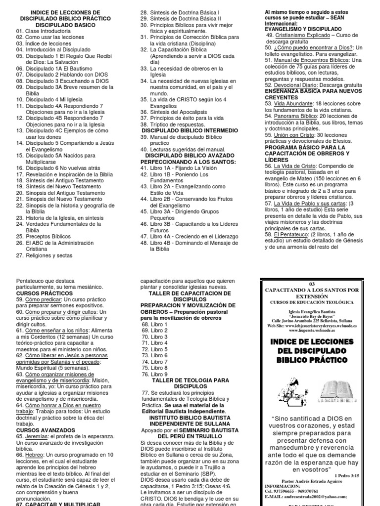 DISCIPULADO BIBLICO PRÁCTICO 29. Síntesis de Doctrina Básica II cursos se puede estudiar – SEAN