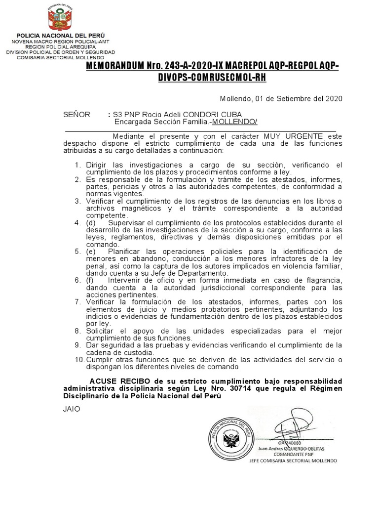 MEMORANDUM Nro. 219-A-2020-IX MACREPOL AQP-REGPOL AQP-