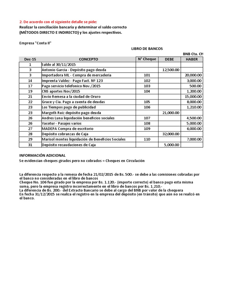 suma, pero la empresa registro incorrectamente en el libro de bancos por Bs. 1.210.-