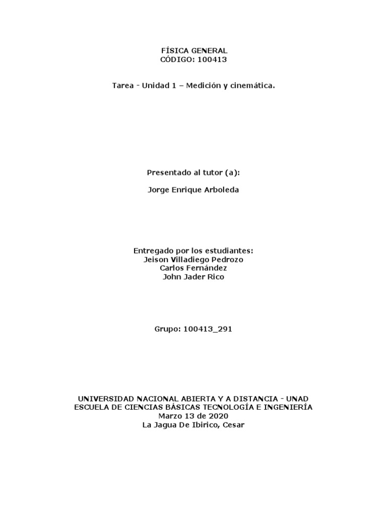 medición y cinemática del curso de física general, dichos temas tales como: Movimiento en una dimensión,