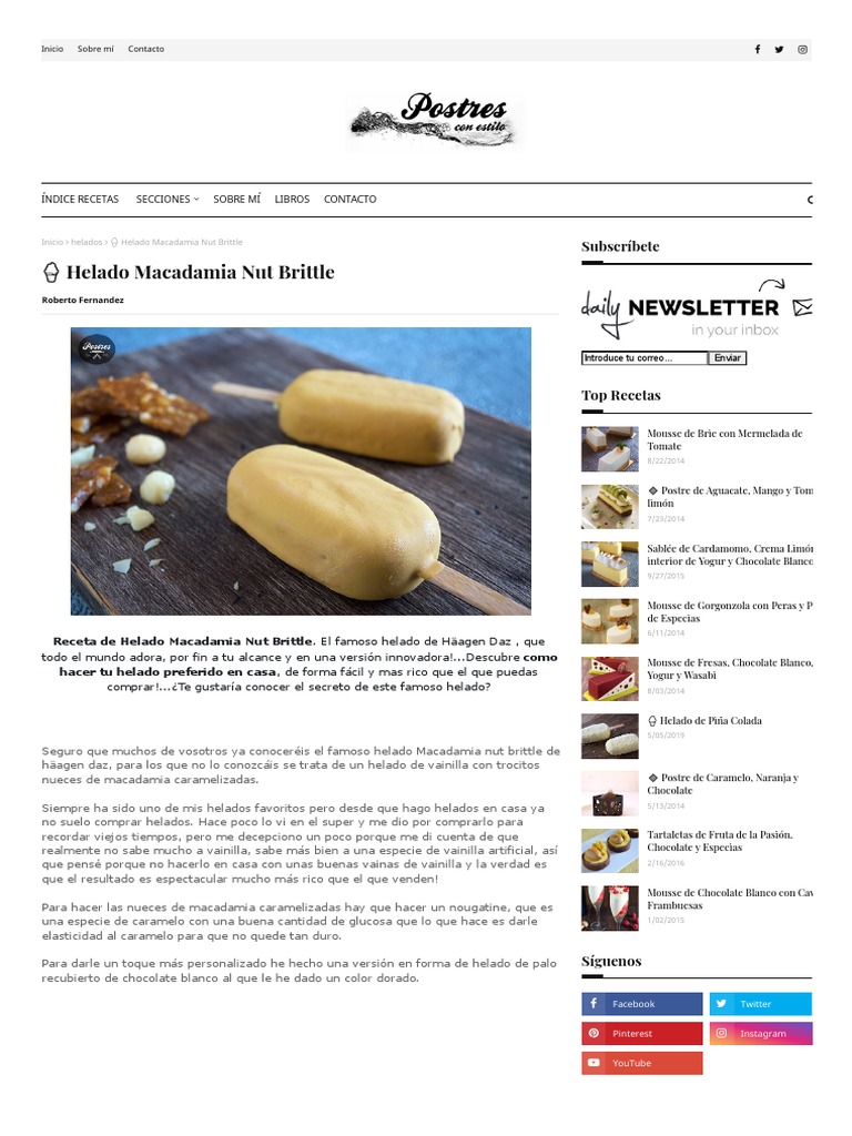 Receta de Helado Macadamia Nut Brittle. El famoso helado de Häagen Daz , que