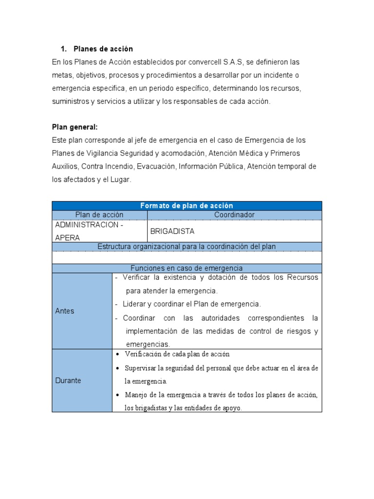 En estos planes están definidas las acciones a realizar por el personal de la