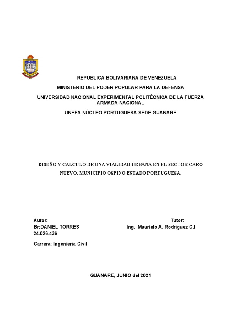 DISEÑO Y CÁLCULO DE UNA VIALIDAD URBANA EN EL SECTOR CARO
