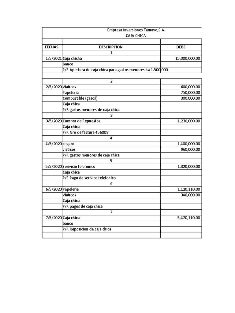 P/R Apertura de caja chica para gastos menores ha 1.500.000