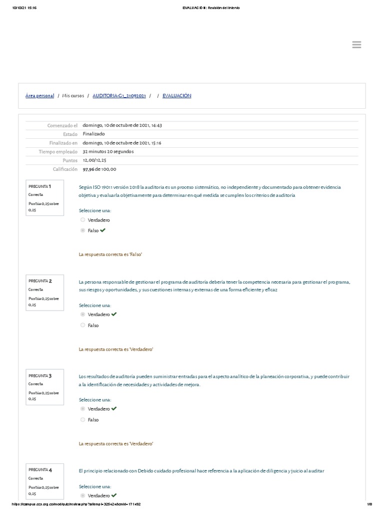 10/10/21 15:16 EVALUACIÓN: Revisión del intento