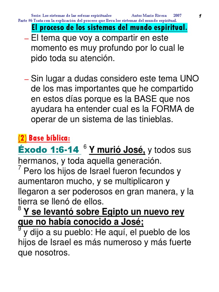 Parte #6 Trata con la explicación del proceso que lleva los sistemas del mundo espiritual.