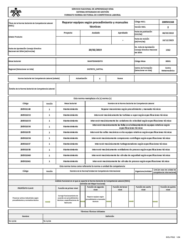 Código Versión Mesa Sectorial Nombre de la Norma Sectorial de Competencia Laboral