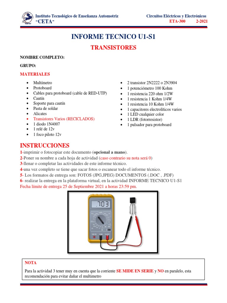 Instituto Tecnológico de Enseñanza Automotriz Circuitos Eléctricos y Electrónicos