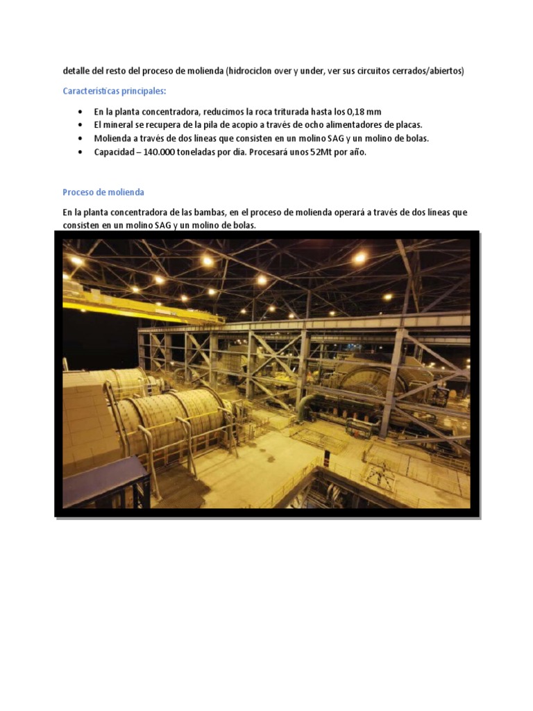 detalle del resto del proceso de molienda (hidrociclon over y under, ver sus circuitos cerrados/abiertos)