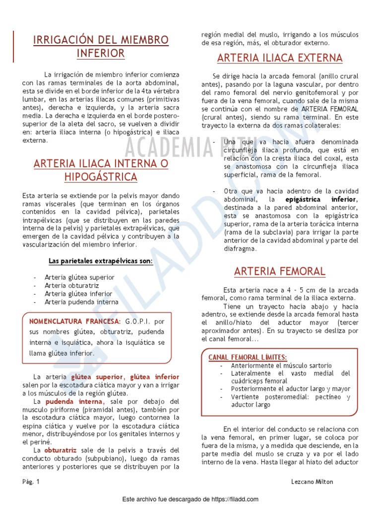 La irrigación de miembro inferior comienza Se dirige hacia la arcada femoral (anillo crural