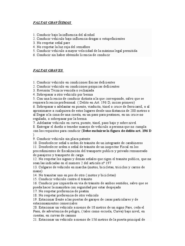 NOTA: toda otra infracción a normas de la ley de transito no